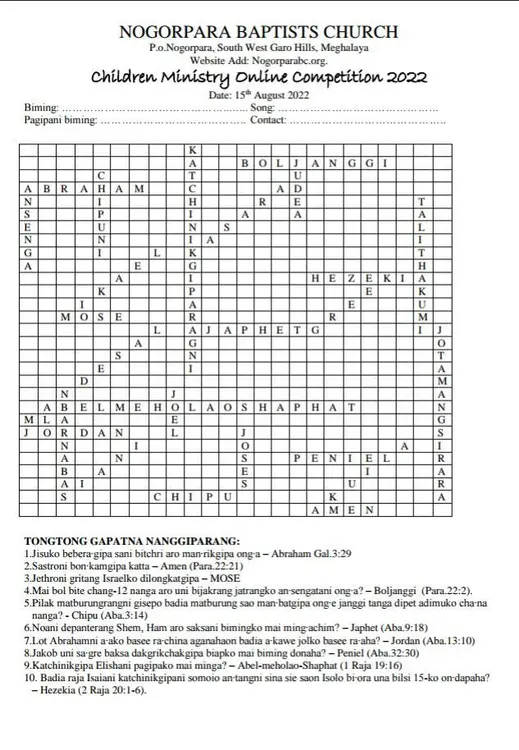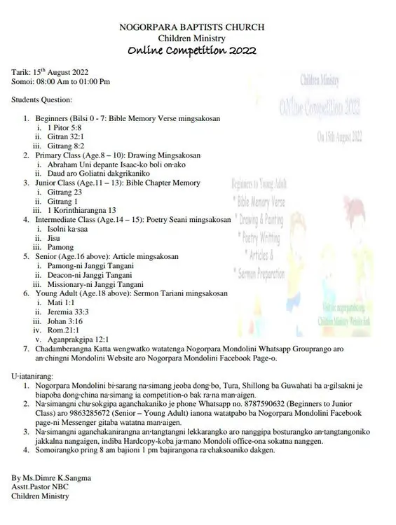 CHILDREN MINISTRY ONLINE COMPETITION 2022